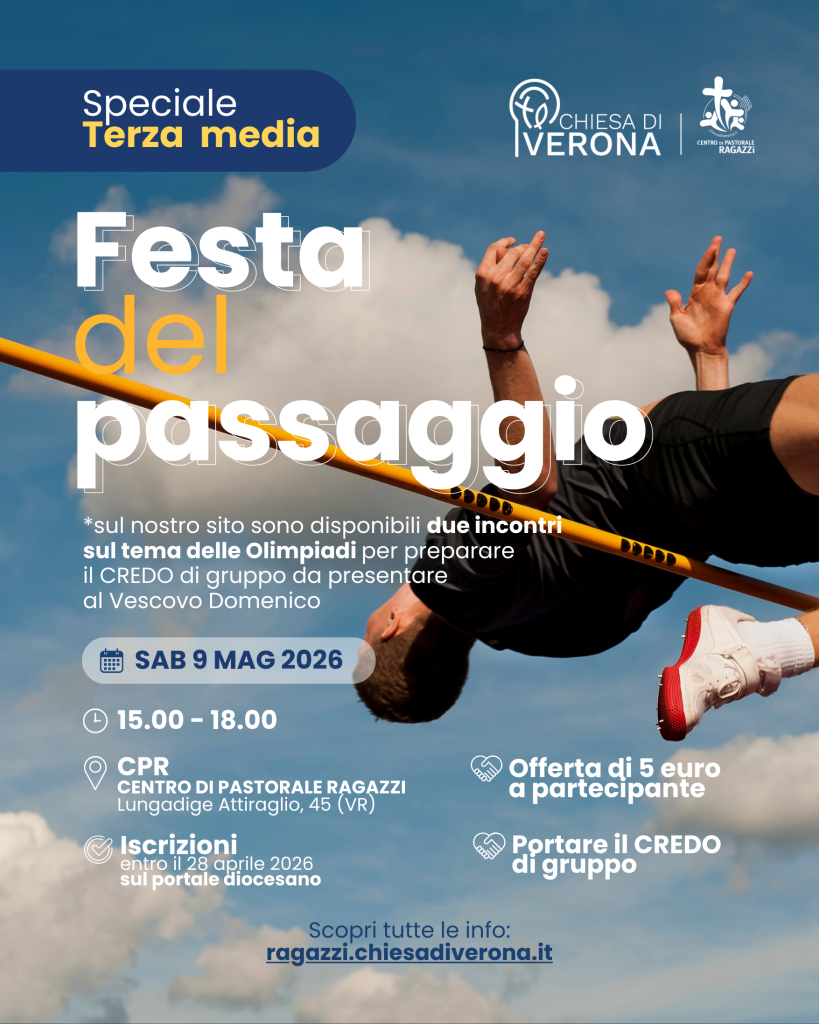 Per chi? L’evento è esclusivo per i ragazzi e le ragazze di terza media della Diocesi di Verona accompagnati da un animatore/catechista/sacerdote