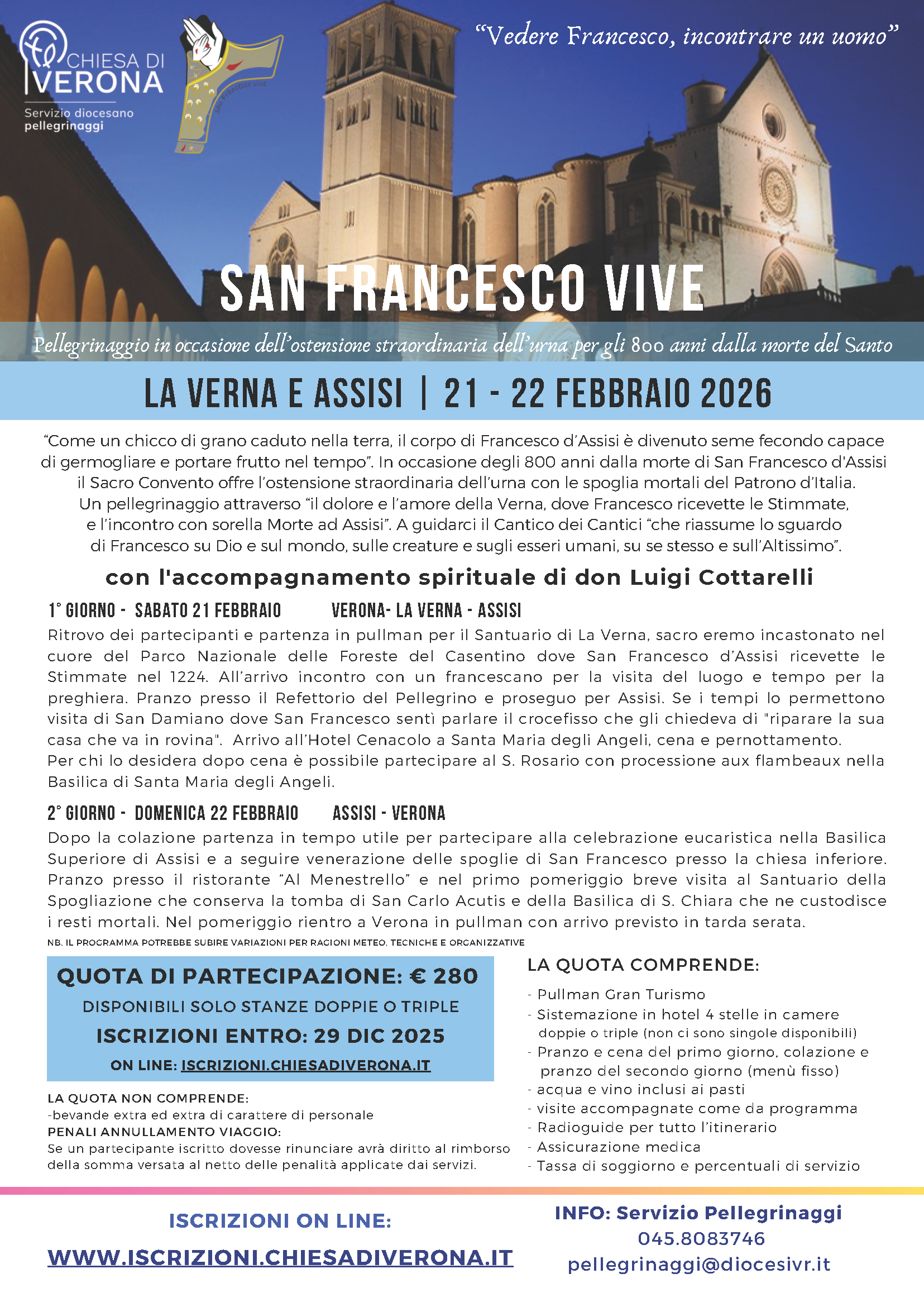 Tel. 045.8083746 – email: pellegrinaggi@diocesivr.it